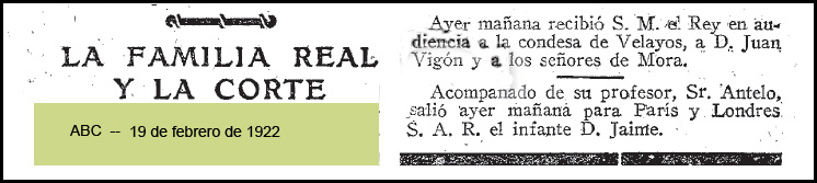 María Concepción gozó, de forma muy personal, del afecto del Rey Alfonso XIII que no solamente la apadrinó en su matrimonio y la recibió junto a su marido inmediatamente a la celebración de la ceremonia religiosa, si no que tuvo con ella audiencias personales en numerosas ocasiones, como la que abajo referenciamos mediante el suelto publicado, como casi siempre, en las páginas de "vida de sociedad y noticias de la Corte" del diário ABC de Madrid. |