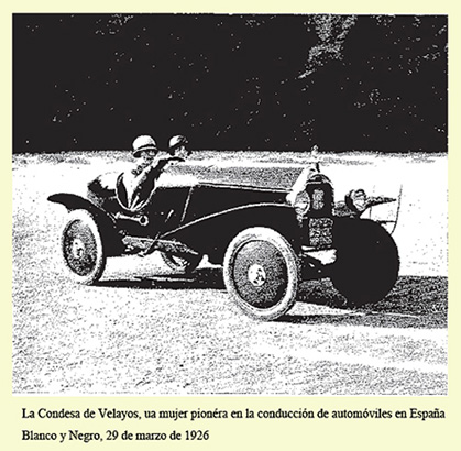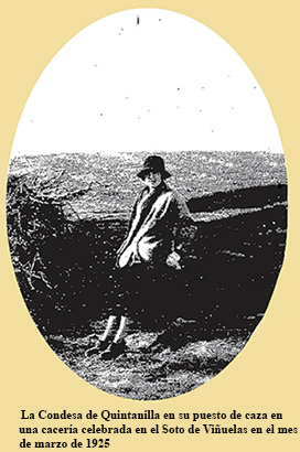 La conducción de automóviles en España en aquella época era realmente muy poco frecuente entre las mujeres. María Concepción fue una auténtica pionera en esta disciplina, conduciendo no solamente automóviles digamos "de turismo" si no también alguno de aquellos de los que en su época podían considerarse como "deportivos", como del que está al volante en la fotografía que acompaña a estas líneas. Junto a ella -en óvalo- otra en una cacería, su primera gran afición deportiva, en Madrid, en el Soto de Viñuelas. |